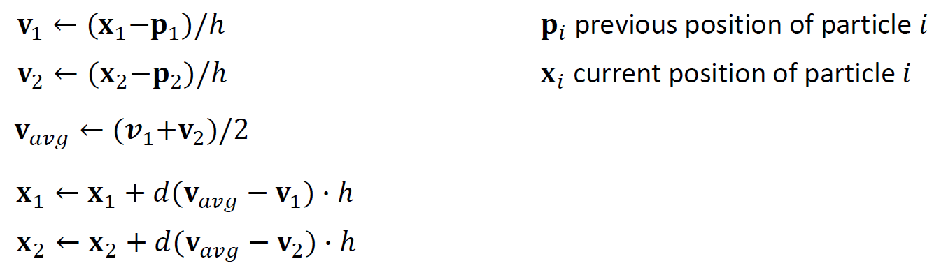 ➡️ 따라서, 다음 식을 통해 한 번의 서브 스텝 도중 최대 정점의 반지름 r만큼 즉, spatial hashing의 grid size 만큼만 이동할 수 있도록 속도를 제한한다: