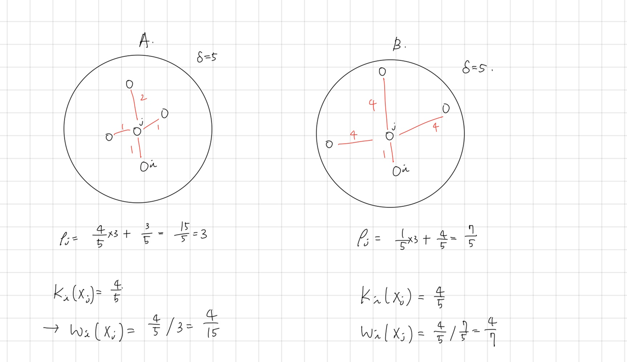w_i^\delta(\mathbf{x}_j) = \frac{K_i^\delta(\mathbf{x}_j)}{\rho_j^\delta}